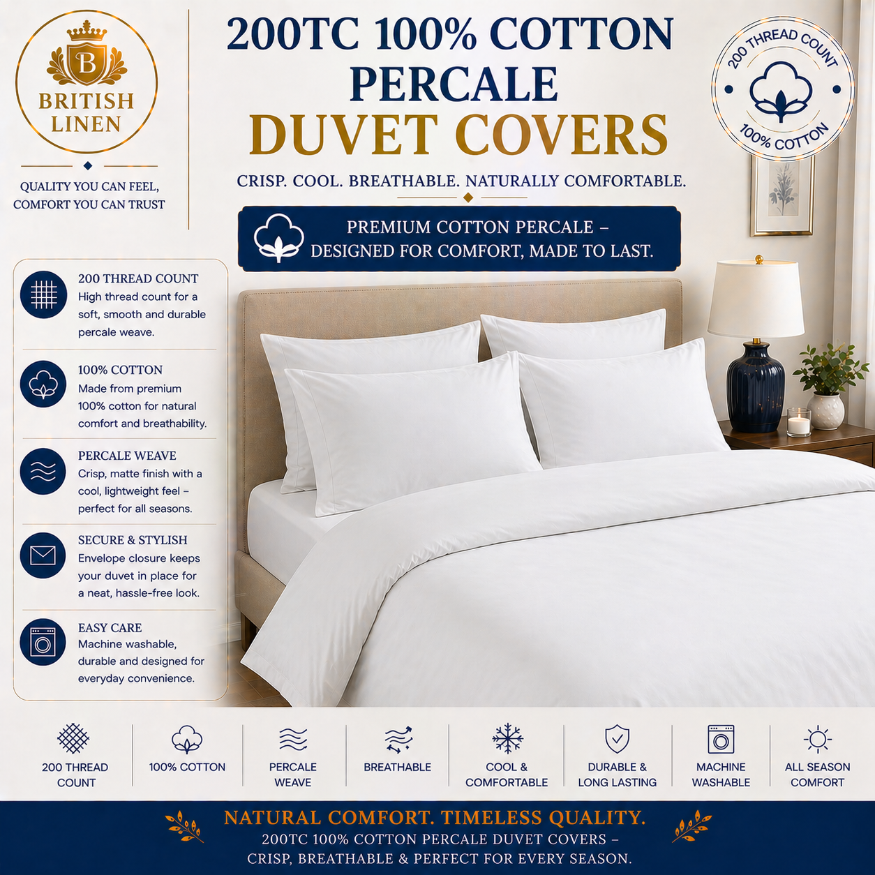 - 200TC Percale Duvet Covers