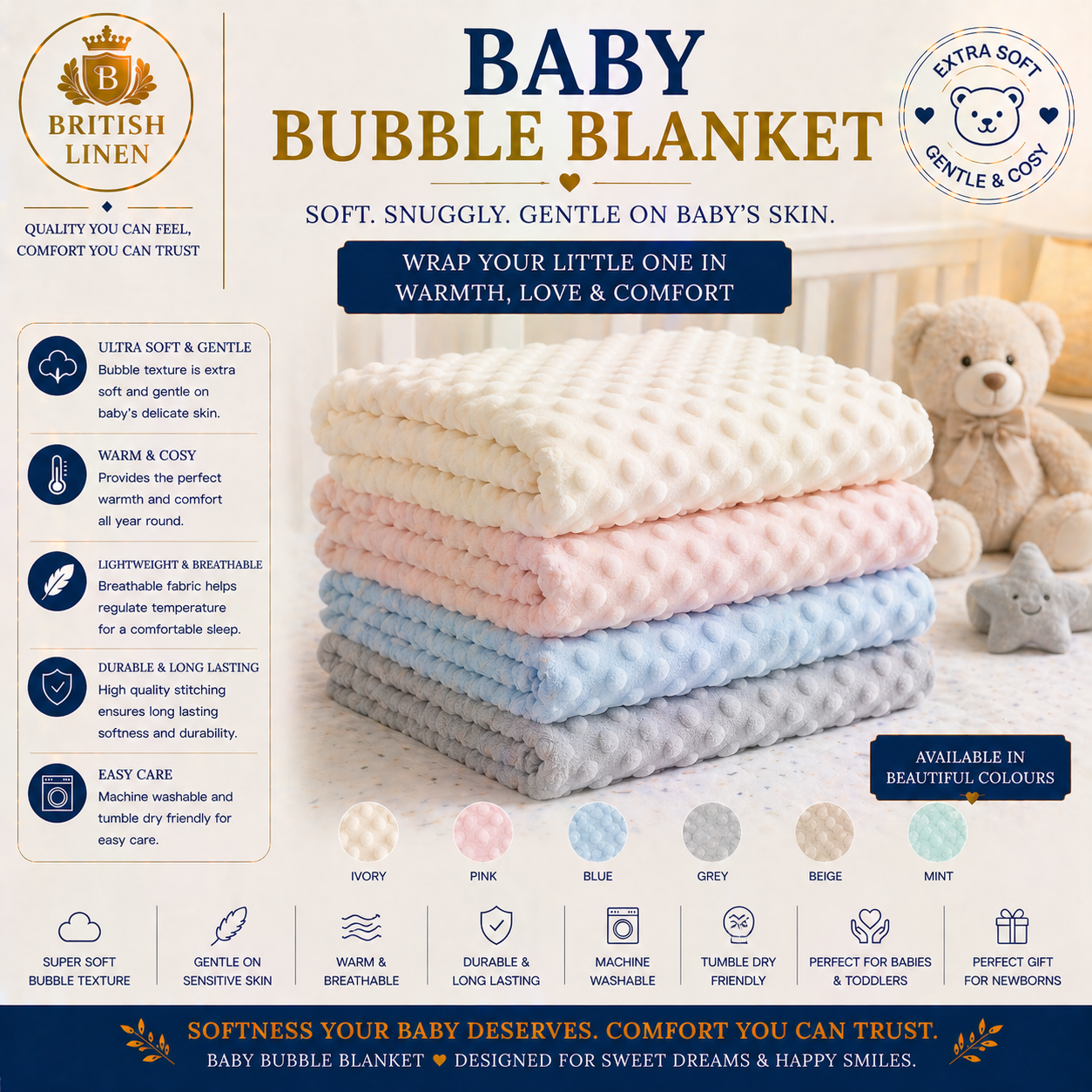 ✔ Designed for Delicate Skin – The soft bubble texture provides extra warmth and comfort, making it perfect for newborns and infants.